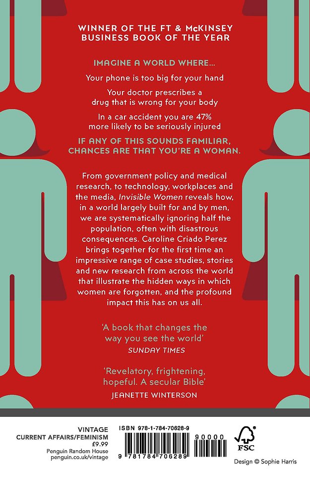 Invisible Women shows us how, in a world largely built for and by men, we are systematically ignoring half the population. It exposes the gender data gap – a gap in our knowledge that is at the root of perpetual, systemic discrimination against women, and that has created a pervasive but invisible bias with a profound effect on women’s lives.