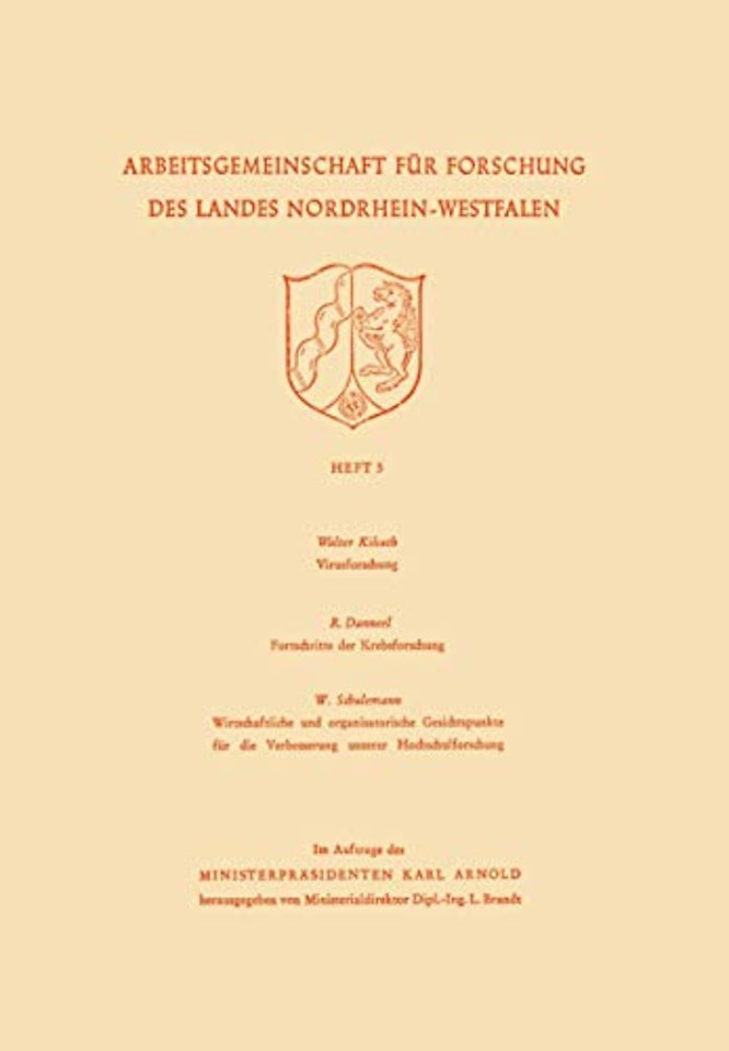 Virusforschung. Zoologisches Institut Bonn Fortschritte der Krebsforschung. Wirtschaftliche und organisatorische Gesichtspunkte für die Verbesserung unserer Hochschulforschung