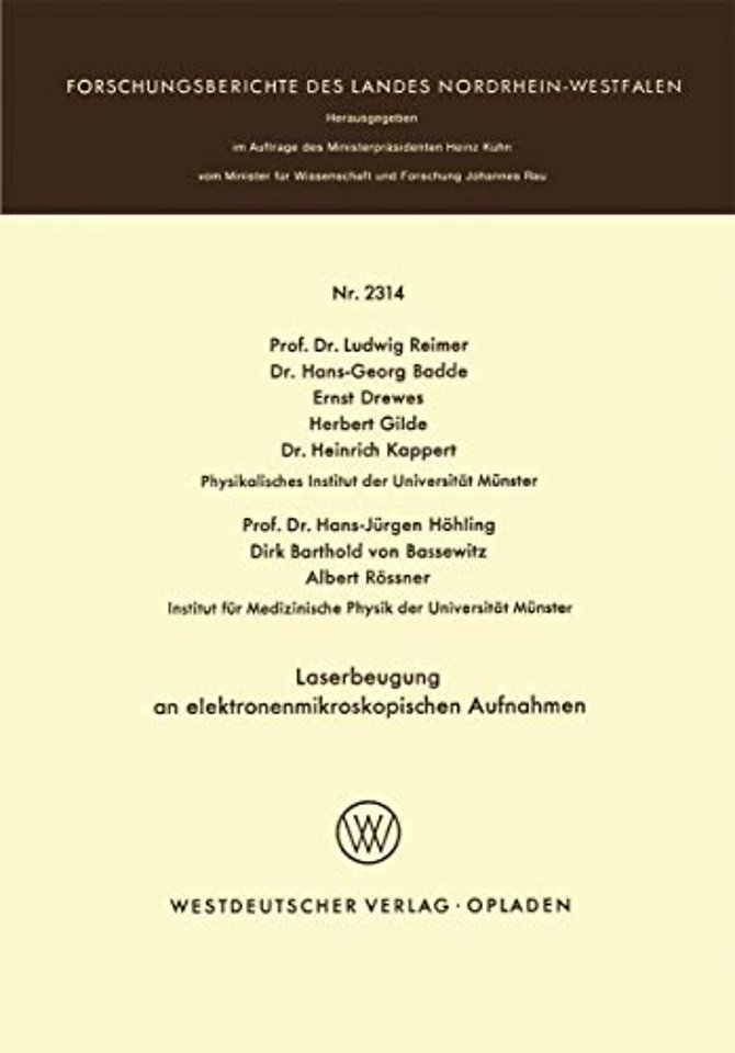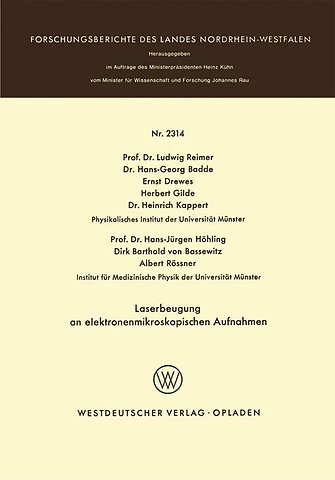 1. Einleitung.- 2. Aufbau einer Beugungsanlage.- 3. Beugung an zweidimensionalen Modellobjekten.- 3.1. Allgemeine Theorie der Fouriertransformation an zweidimensionalen periodischen Objekten.- 3.2. Diskussion von Beispielen.- 4. Quantitative Auswertung der Intensität in Beugungsdiagrammen.- 4.1. Einfluß der Phasenschiebung der Photoplatte.- 4.2. Vergleich mit Modellobjekten.- 5. Anwendungsbeispiele.- 5.1. Bestimmung der Defokussierung und des Astigmatismus.- 5.2. Ortsfrequenzspektrum von Trägerfolien.- 5.3. Vermessung des Magnetisierungsripple in ferromagnetischen Schichten.- 5.4. Beugung an Aufnahmen biologischer Dünnschnitte.- Literatur.- Abbildungen.