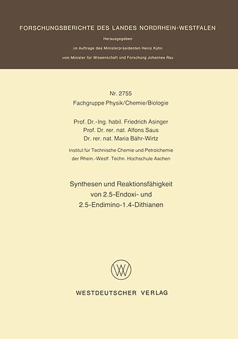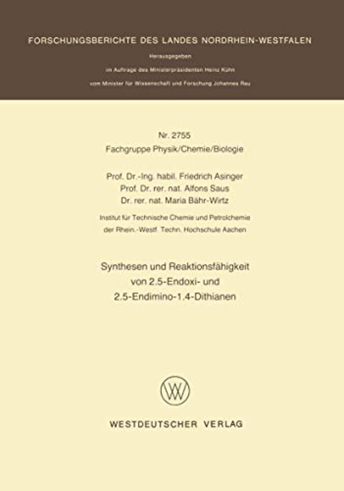 Bei unseren zahlreichen durch das Landesamt für Forschung beim Ministerpräsidenten des Landes Nordrhein-Westfalen finanziell unterstützten Arbeiten über "Synthesen mit Ketonen, Schwefel und Ammoniak bzw. Aminen und chemisches Verhalten der Reaktions produkte" erhielten wir bei der Hydrolyse von Thiazolinen-3 mit Mineralsäuren zur Herstellung voncL-Mercaptoketonen, als Neben produkte in mehr oder minder großen Mengen 2. 5-Endoxy-l. 4-di thiane bzw. bei der Hydrolyse mit Hilfe von Essigsäure 2. 5-En dimino-l. 4-dithiane. Ober das Reaktionsverhalten dieser nomsehr wenig bekannten und bearbeiteten Gruppe heterocyclischer Schwefel-Sauerstoff- bzw. Schwefel-Stickstoff-Verbindungen, die mittlerweile durch unsere Arbeiten einfach und mit guten Ausbeuten zugänglich geworden sind, wußte man bisher fast nichts. Vorliegender Bericht gibt erstmals einen Einblick, insbesondere in das Reaktionsverhalten der Endiminodithiane. Meinen Mitarbeitern, die an Teilgebieten dieses Themas mitgear beitet haben, danke ich für die fleißige und begeistert gelei stete Arbeit. Wir alle danken dem Landesamt für Forschung beim Ministerpräsidenten des Landes Nordrhein-Westfalen und dem Mi nister für Wissenschaft und Forschung des Landes Nordrhein-West falen für die dauernd gewährte Unterstützung unserer Arbeiten. INHALTSVERZEICHNIS Seite Einleitung 1 Allgemeiner Teil 6 Herstellung und Reaktionen der 2. 5-Endoxy-l. 4-dithiane 6 Die Wasserabspaltung aus 2. 5-Dihydroxy-l. 4-dithianen. 8 Obergang von dimeren~-Mercaptoketinen in 2. 5-Endoxy dithiane Darstellung von 2. 5-Endoxy-l. 4-dithianen 11 2. 5-Endoxy-l. 4-dithiane durch Erhitzen von ~-Mercapto- 11 ketonen 2. 5-Endoxy-l. 4-dithiane durch Einwirkung von Säuren auf 11 J, -Mercaptoketone 2. 5-Endoxy-l. 4-dithiane durch saure Hydrolyse von Thia- 14 zolinen-3 Oxidation von 2. 5-Endoxy-l. 4-dithianen 16 Umsetzungsversuche der Endoxydithiane bzw. deren Disul- 16 fone mit Ammoniak bzw.