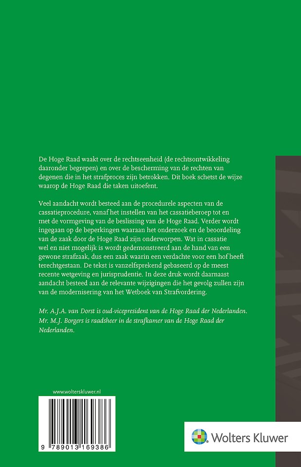 Cassatie in strafzaken is de enige uitgave die een kijkje in de keuken van de strafkamer van de Hoge Raad biedt. De titel is geschreven voor strafadvocaten, leden van het openbaar ministerie en rechters. Maar ook voor docenten, studenten en andere geïnteresseerden vormt deze uitgave een uiterst nuttige bron van informatie.