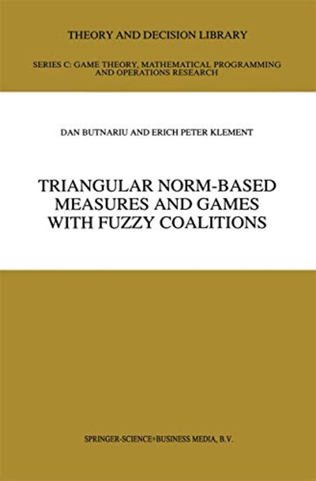 This book aims to present, in a unified approach, a series of mathematical results con cerning triangular norm-based measures and a class of cooperative games with Juzzy coalitions. Our approach intends to emphasize that triangular norm-based measures are powerful tools in exploring the coalitional behaviour in 'such games. They not and simplify some technical aspects of the already classical axiomatic the only unify ory of Aumann-Shapley values, but also provide new perspectives and insights into these results. Moreover, this machinery allows us to obtain, in the game theoretical context, new and heuristically meaningful information, which has a significant impact on balancedness and equilibria analysis in a cooperative environment. From a formal point of view, triangular norm-based measures are valuations on subsets of a unit cube [0, 1]X which preserve dual binary operations induced by trian gular norms on the unit interval [0, 1]. Triangular norms (and their dual conorms) are algebraic operations on [0,1] which were suggested by MENGER [1942] and which proved to be useful in the theory of probabilistic metric spaces (see also [WALD 1943]). The idea of a triangular norm-based measure was implicitly used under various names: vector integrals [DVORETZKY, WALD & WOLFOWITZ 1951], prob abilities oj Juzzy events [ZADEH 1968], and measures on ideal sets [AUMANN & SHAPLEY 1974, p. 152].