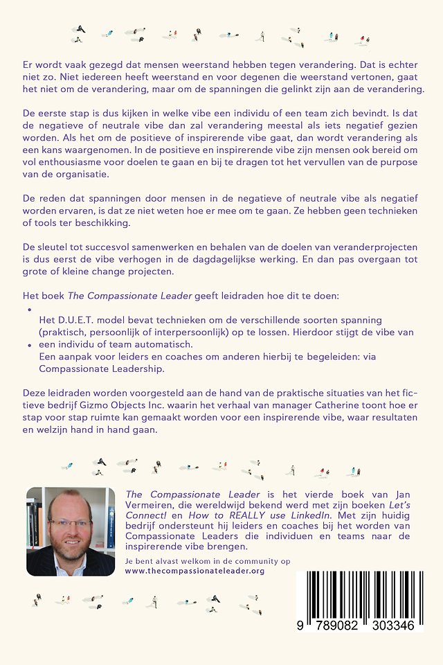 The Compassionate Leader is het vierde boek van Jan Vermeiren, die wereldwijd bekend werd met zijn boeken Let’s Connect! en How to REALLY use LinkedIn. Met zijn huidig bedrijf ondersteunt hij leiders en coaches bij het worden van Compassionate Leaders die individuen en teams naar de inspirerende vibe brengen.