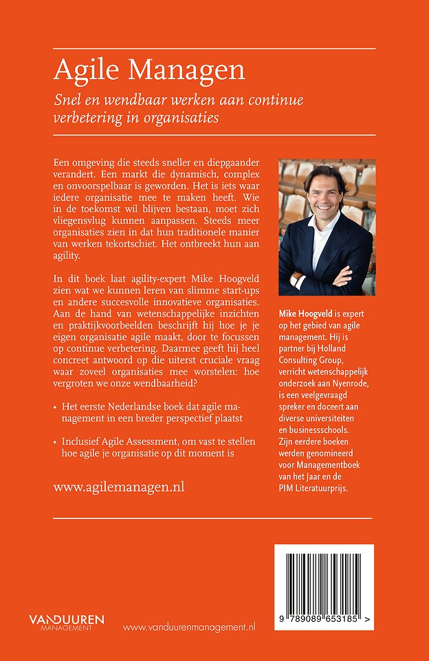 Meer over Mike HoogveldEen omgeving die steeds sneller en diepgaander verandert. Een markt die dynamisch, complex en onvoorspelbaar is geworden. Het is iets waar iedere organisatie mee te maken heeft. Wie in de toekomst wil blijven bestaan, moet zich vliegensvlug kunnen aanpassen. Steeds meer organisaties zien in dat hun traditionele manier van werken tekortschiet. Het ontbreekt hun aan agility.
