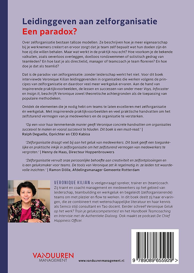 'Zelforganisatie draagt veel bij aan het geluk van medewerkers. Dit boek geeft een toegankelijke en praktische inkijk in zelforganisatie om het zelfsturend vermogen van medewerkers te vergroten.' - Henny de Haas, Directeur Hoppenbrouwers