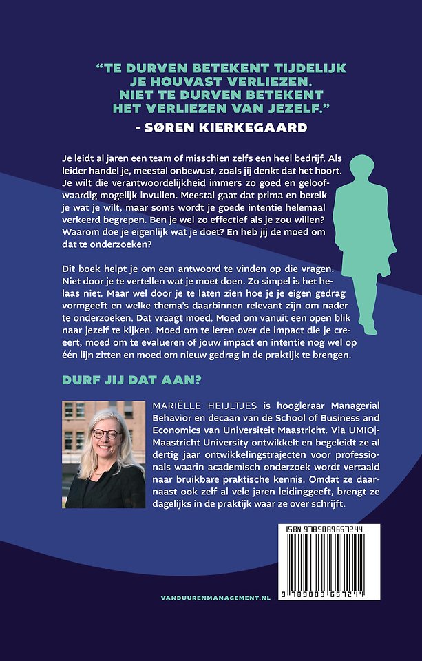 Dit boek helpt je om een antwoord te vinden op die vragen. Niet door je te vertellen wat je moet doen. Zo simpel is het helaas niet. Maar wel door je te laten zien hoe je je eigen gedrag vormgeeft en welke thema’s daarbinnen relevant zijn om nader te onderzoeken. Dat vraagt moed. Moed om vanuit een open blik naar jezelf te kijken. Moed om te leren over de impact die je creëert, moed om te evalueren of jouw impact en intentie nog wel op een lijn zitten en moed om nieuw gedrag in de praktijk te brengen.