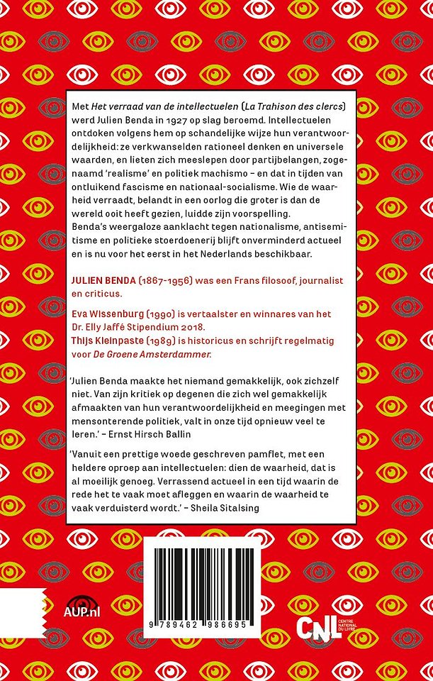 In Nederland is het 'verraad der klerken' in de loop der jaren een begrip geworden. De publicatie van de eerste Nederlandse vertaling van 'La Trahison des clercs' zal een belangrijke bijdrage leveren aan het zinderende debat zoals dat nu gevoerd wordt op scholen, in de media en in de politiek.