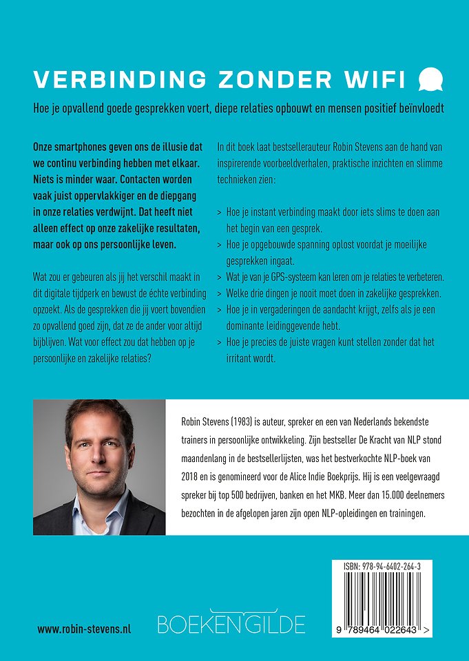 Smartphone weg, face-to-face. Verbinding zonder wifi. Hoe je opvallend goede gesprekken voert, diepe relaties opbouwt en mensen positief beïnvloedt. Wie wil dat niet? Robin Stevens belooft veel met de opvolger van zijn bestseller De kracht van NLP. In dezelfde luchtige stijl een reality check voor je communicatie en echt contact met mensen om je heen.