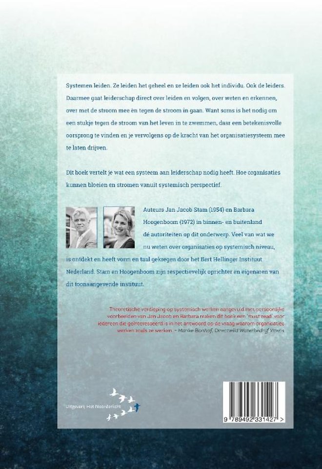 Soms is het nodig om een stukje tegen de stroom van het leven in te zwemmen, daar een betekenisvolle oorsprong te vinden en je vervolgens op de kracht van het organisatiesysteem mee te laten drijven. Dit boek gaat over wat organisaties nodig hebben aan leiderschap. Over hoe systemisch leiderschap kan bijdragen aan een florerend organisatiesysteem. Het is geen zelfhulpboek, het gaat niet over jou als leider of manager, of over hoe je al dan niet aan jezelf zou moet werken.