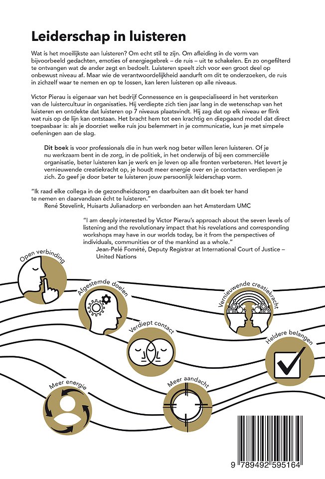 Victor Pierau verdiepte zich tien jaar lang in de wetenschap van het luisteren en ontdekte dat luisteren op 7 niveaus plaatsvindt. Hij zag dat op elk niveau er flink wat ruis op de lijn kan ontstaan. Als je doorziet welke ruis jou belemmert in je communicatie, kun je met simpele oefeningen aan de slag.